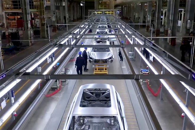 在前不久网易新闻《了不起的中国制造》栏目举办的动力沙龙中,来自核动力、高铁、船舶的权威动力专家分别分享了他们对于中国国产[汽车](https://news.163.com/news/search?keyword=%E6%B1%BD%E8%BD%A6)动力的认知和感受,并探讨了技术引进和自主研发之间的关系,来自重庆长安长安汽车股份有限公司动力研究院的胡铁刚博士特别向大家介绍了长安汽车在合肥的智慧[工厂](https://news.163.com/news/search?keyword=%E5%B7%A5%E5%8E%82)。  (《论道中国动力 探寻破壁之路》直播现场) 据他介绍,合肥智慧工厂正是长安明日座驾 CS75 PLUS 的诞生地,“这个工厂投资了 50 亿,两期,它的最大亮点是生产效率大大提高,每 60 秒就会有一辆汽车生产出来,工厂用了大量机器人的[焊装](https://news.163.com/news/search?keyword=%E7%84%8A%E8%A3%85)、组装,还用到了云、大数据的管理办法,数控率达到了 80%,自动化率达到了 90%,数据上云达到了 100%,车辆生产的每一个环节都会被记录下来可追溯,车辆的生产质量一致性非常高”。  胡博士口中这个高效、智慧的汽车生产线长什么样?长安 CS75 PLUS 明日座驾又是怎么生产出来的?长安蓝鲸 2.0T 发动机搭配爱信 8AT 变速器,又会有怎样的驾乘体验?近日,我们跟随几位动力专家的脚步,一起探访了长安 CS75 PLUS 汽车位于合肥的智慧工厂。 l 智能制造 自动化程度高 合肥长安二期工厂建设于 2017 年 6 月正式启动,集成了大数据、云计算、人工智能、物联网等技术,在这里,一辆汽车的整个生产过程全部在智能监管之下。 焊装车间采用了一套焊接天网检测系统,该系统包括 106 个质量数据采集、监控点,54 个防错门,27 个质量门,具备自动识别故障、自动报警、自动检测等功能。 智能制造是二期工厂的重要特点,厂内共配备了 390 台德国 KUKA 全自动焊装机器人,154 套德国高精度电动拧紧工具,112 台日本川崎机器人,126 台 AGV 自动导引机器人,瑞士自动涂胶 ABB 机器人等等。 智能化机器人的加入,最直接的效果就是大大提高了生产效率,目前工厂每一分钟就能有一台新车下线,完全达到了国内外成熟工厂的先进水平。 l 数字化车间 生产效率全面提升 本次专家探访主要参观了工厂四大工艺车间中的冲压、焊装和总装车间,过程中,长安汽车派出专业工程师全程讲解并回答专家们提出的问题。  (动力领域专家在合肥智慧工厂聆听长安工程师讲解工厂情况) 冲压车间:全新冲压线 生产速度 15 次/分钟 新线上的首台冲压机为 2400 吨,采用八连杆传动技术,回程速度可以达到 20 次/分钟。钢板在完成一道工序之后由自动化双臂横杆[机械](https://news.163.com/news/search?keyword=%E6%9C%BA%E6%A2%B0)手快速运到下一个压机,使得整条冲压线的生产速度可以达到 15 次/分钟。什么概念呢?老线上的生产速度为 6 次/分钟,生产效率直接提升了一倍多。同时,整线采用了快速换模系统,整套模具可以在 3 分钟之内换好,非常高效。  (长安合肥智慧工厂冲压车间二期采用全封闭设计) 在 2400 吨冲压机后面是一台 1600 吨冲压机和三台 1000 吨冲压机,整个冲压线的体量比老线高出许多。而且采用全封闭设计,不仅能保障冲压质量,在运转的时候工厂也会更加安静。 为了保障分拣速度,车间采用双上料单元的组合,一侧单元上料时,另一侧可以提前准备钢板。钢板经过磁力分张器拆分之后,经过成型、切边、整形、翻边、冲孔这五道工序最终一步步的变成汽车零件。  (冲压车间内,工作人员正在检测冲压成型的汽车零部件) 钢板完成所有冲压工序之后,都会经过人工检查,如果有问题会交到返修部门。配合检测的还有平行光检测室,检测频率是 50 件/次,检测合格的产品会由 AGV 小车运往仓库。这种小车在其他车间同样能够见到,是个智能的自动运输设备。 为了确保成品的高质量,成品零件在送到仓库后以后会进行二次抽检,进行三坐标检测和蓝光检测等。 焊装车间:390 台 KUKA 机器人 自动化率高达到 90.5% 所有检测合格的冲压零部件的下一个去处就是焊装车间。 焊装车间的主要职能是四个车门、发动机舱盖、后备箱盖的加工与安装、车身零部件的组合焊接,就像搭积木一样,将各个零件拼接起来组合成白车身。 目前焊装车间有 390 台德国 KUKA 全自动焊装机器人,在提高生产效率的同时,也降低了工人的劳动强度。 激光焊接是很多消费者都听说过的高级焊接工艺,CS75 PLUS 的顶盖就是在激光焊房的智能化工位上完成的。合肥工厂采用的是 Laserline 6000W 二极半导体激光器,由 4 台 KUKA 焊接机器人安装 HIGHYAG 激光头进行焊接。单侧焊缝长度到 1850mm,采用 A、B 库柔性化焊接,可支持 4 个车型的焊接工作,全车的焊接工作可以在 76 秒内完成。 相较于以前传统的人工点焊,现在的技术在提升车身美观度的同时更提高了安全性能,车身强度能够提高 30%。在中保研发布的 CS75 PLUS 的碰撞测试结果中,25% 的正面及侧面碰撞都取得了最优的成绩,位列自主品牌前列。  (长安合肥智慧工厂焊装车间检测线) 焊装车间中的“质量门”是智慧工厂在质量保障上的一个重要体现,这个工位主要是对车身进行焊接精度检测。它是由四个机器人组成的通道,当车身通过时,质量门会在 39 秒内同时完成白车身上 300 多个焊点的精度检测,并且每个测量点误差控制在 0.05 毫米内。这样的质量门在焊装车间还有 27 个,来保障“明日座驾”超高强度的车身精度。 整个焊装车间支